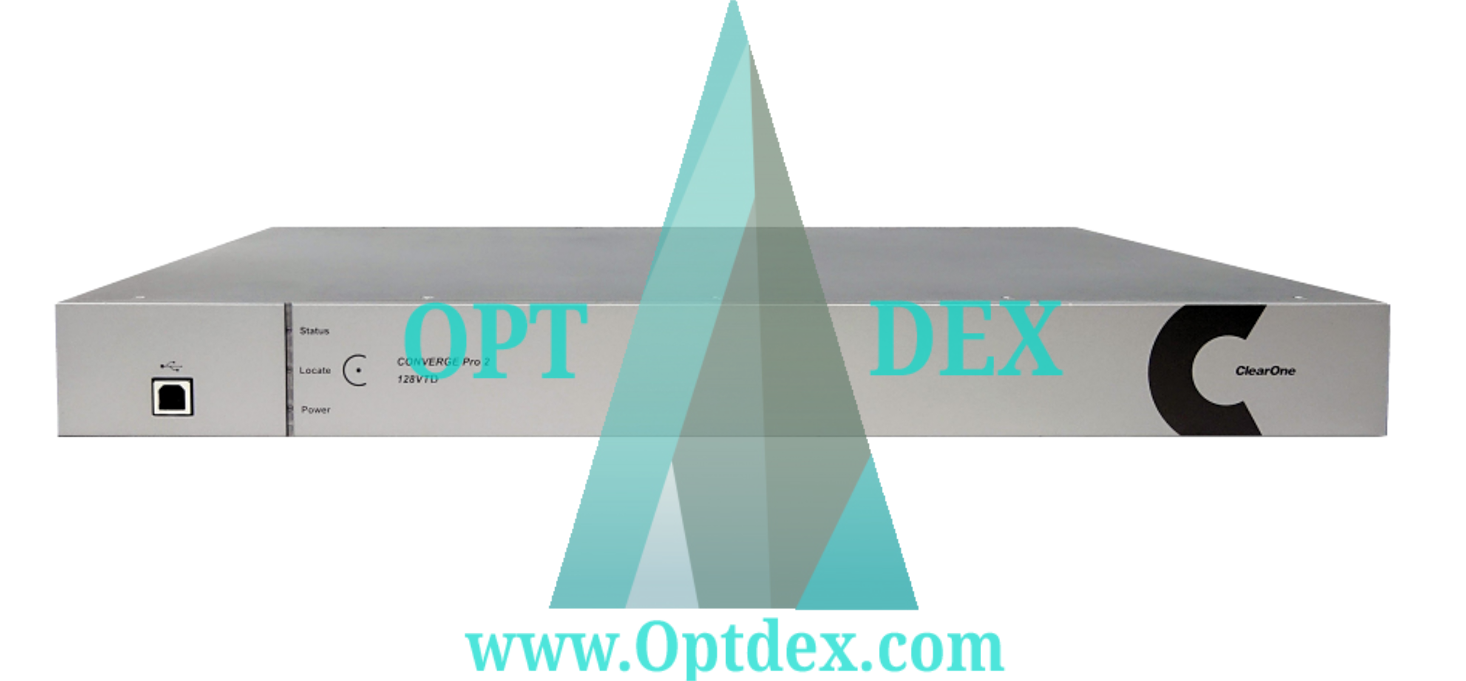 ClearOne 128VTD supports SIP, Dante®, 12 configurable mic/line audio inputs, 8 configurable mic/line audio outputs, built-in USB audio, and a Telco interface for POTS calls.